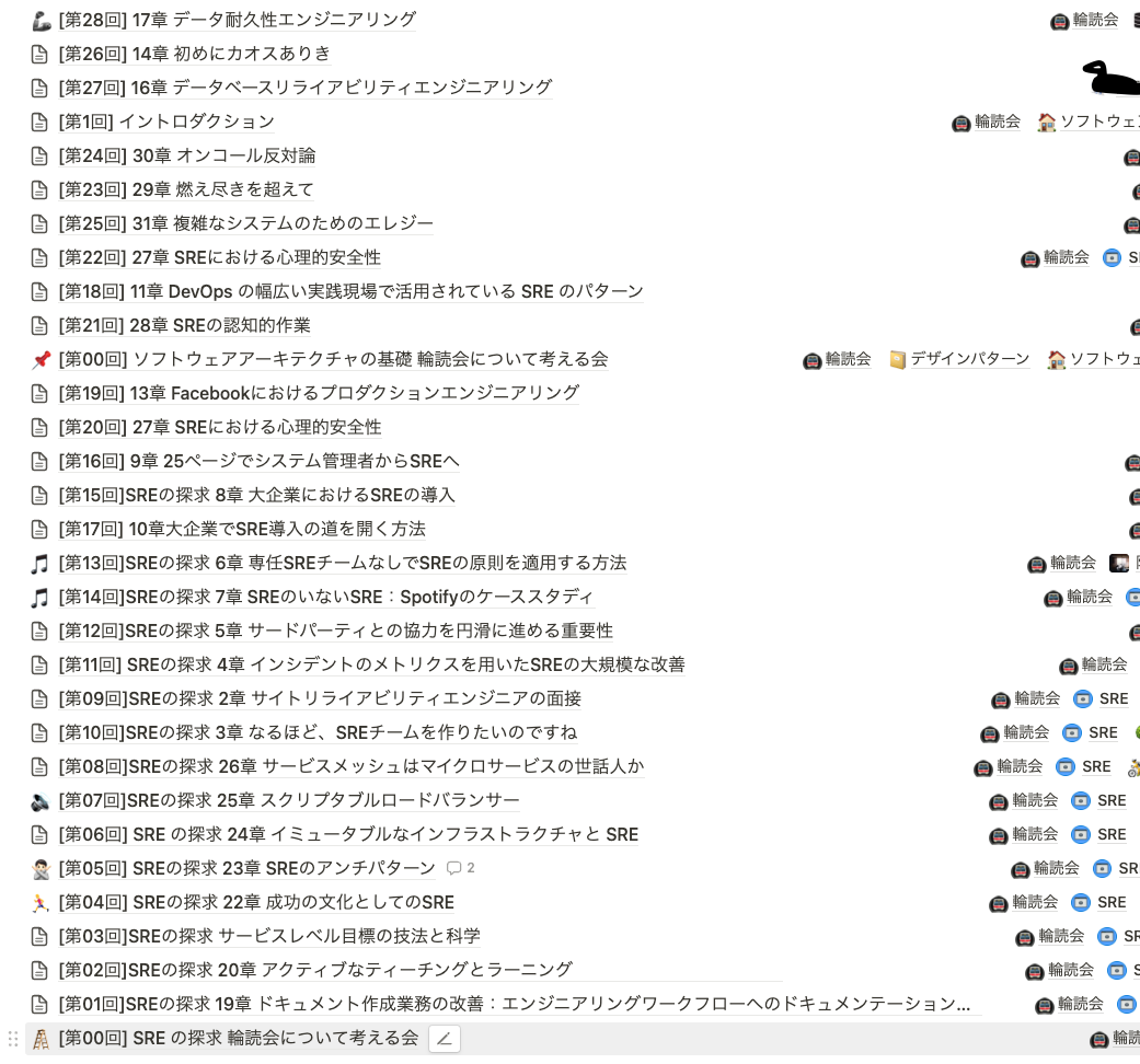 すごい有意義な時間でした。 Sreake内で自分は人数も組織も大きな組織でどうやって既存の組織にSREを導入するか?を考えているので、様々なプラクティスを知れたのは良い体験でした。 輪読で学んだことをお客様に話すと「なるほど!」と言ってもらえることも多々ありました。